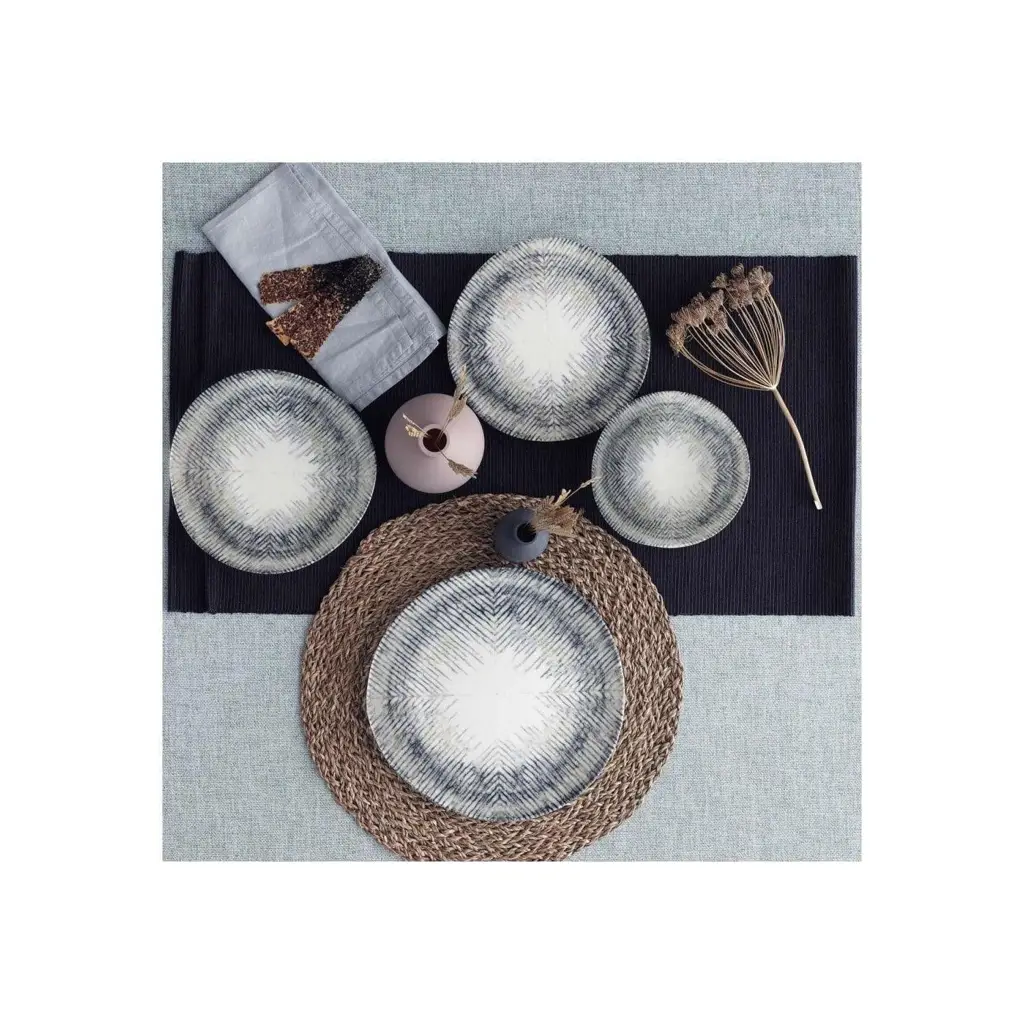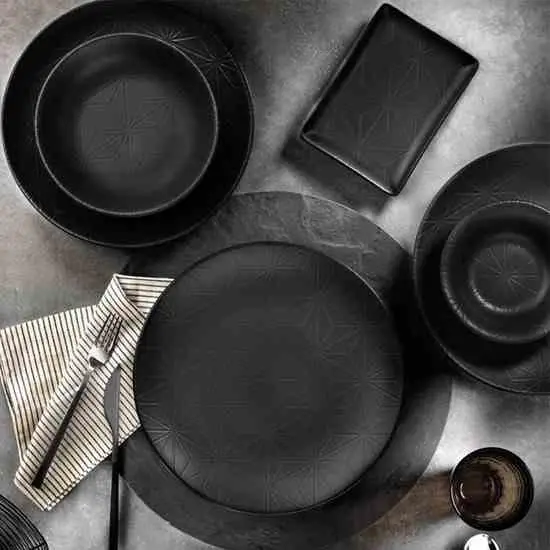 Mat zwart met patroon 24-delig porselein serviesset
