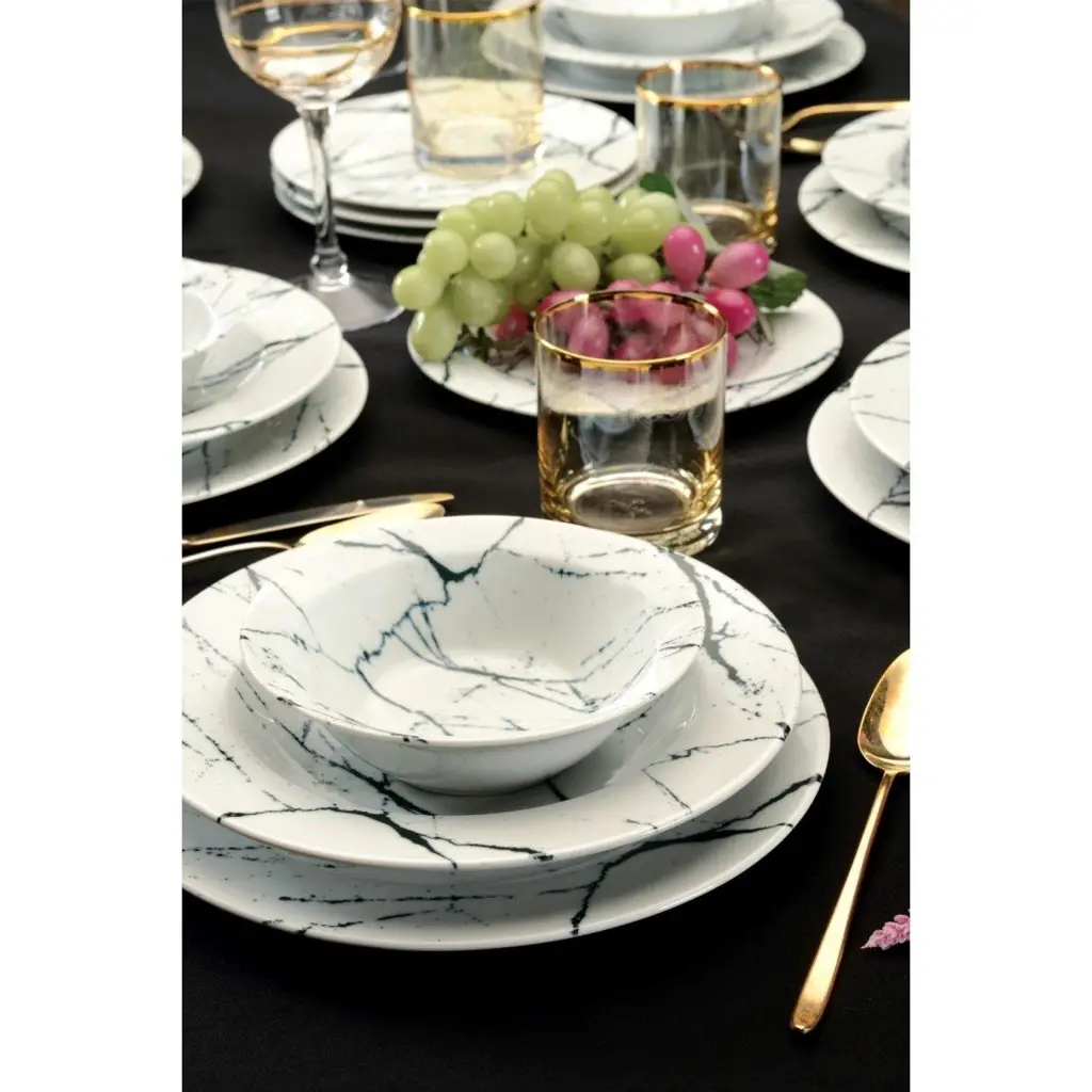 Witte marmer look 24-delige porselein serviesset