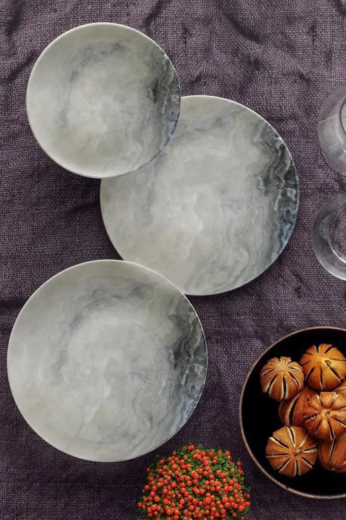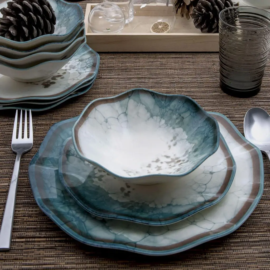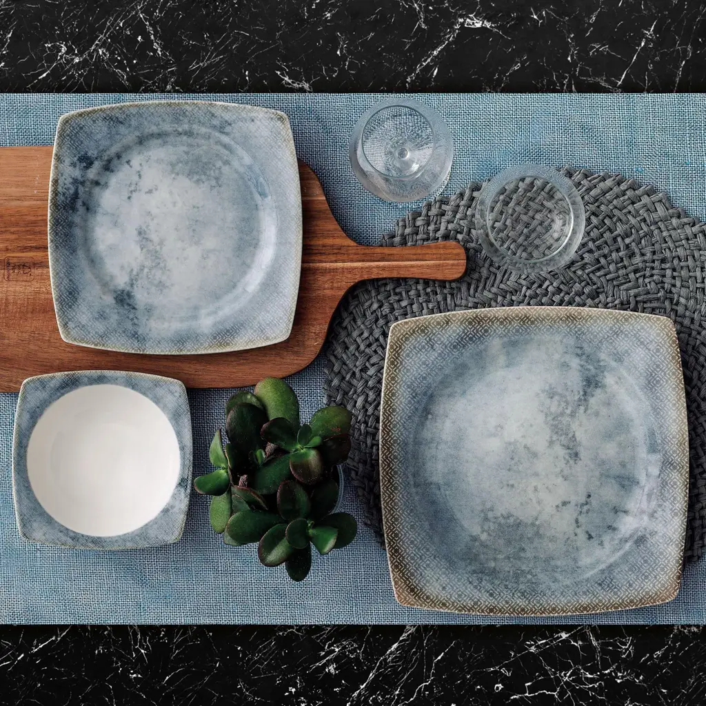 Vierkant servies lichtblauw-grijs marmer design