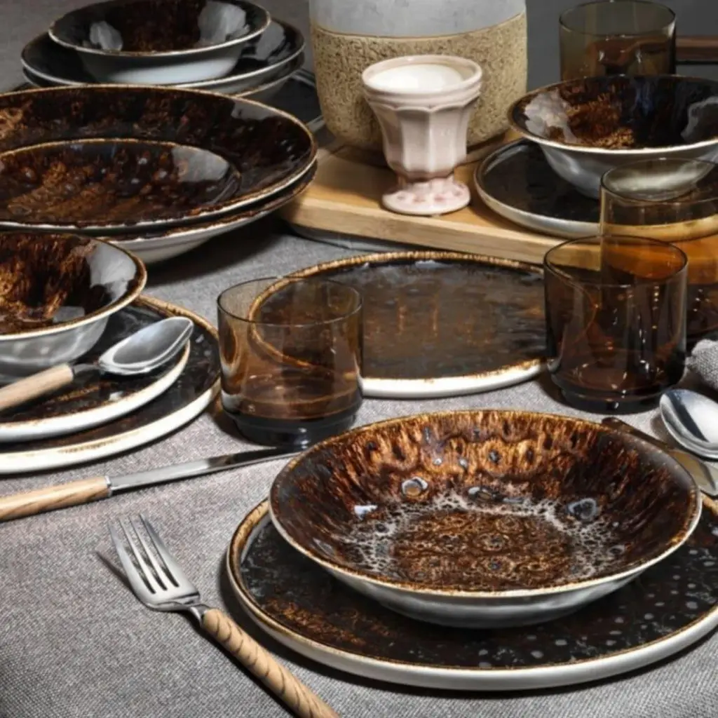 Bruin Servies | Serviesset 6 persoons 26-delig0 - Tijdelijke Korting | "Boho" serie met saladeborden