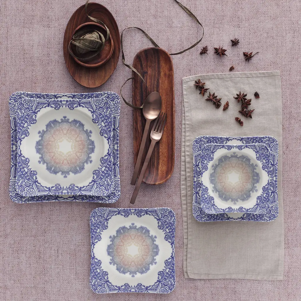 Vierkant porselein serviesset 24-delig "Boho-romance" serie